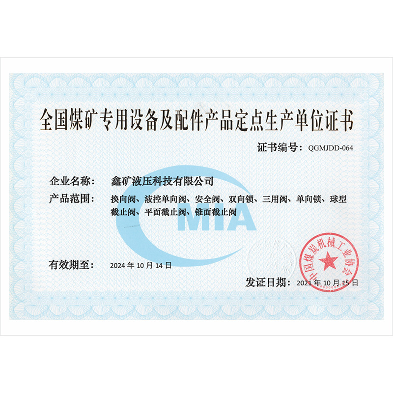 全國煤礦專用設(shè)備及配件產(chǎn)品定點生產(chǎn)單位證書
